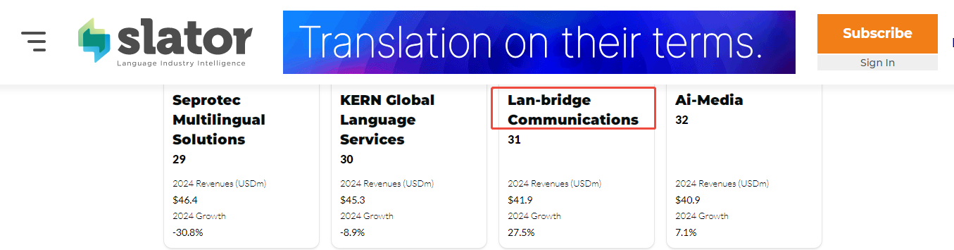 Slator成立于2014年,是專注于語言服務(wù)和語言技術(shù)行業(yè)的新聞通訊與分析平臺。它的Top 100榜單自發(fā)布以來迅速成為市場關(guān)注的焦點(diǎn),尤其因其數(shù)據(jù)公開透明、持續(xù)更新及時(shí)反映市場動態(tài)而獲得業(yè)界認(rèn)可。