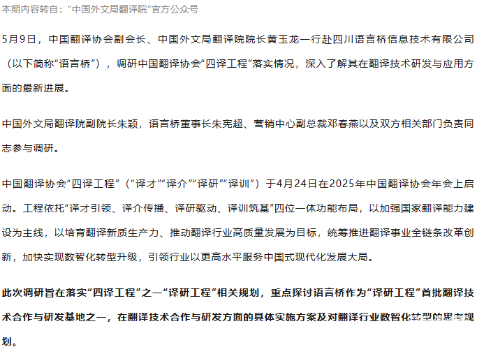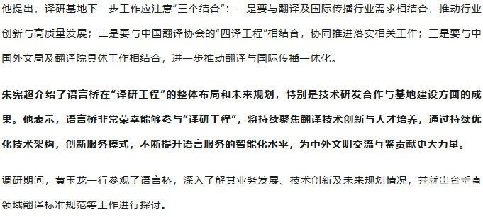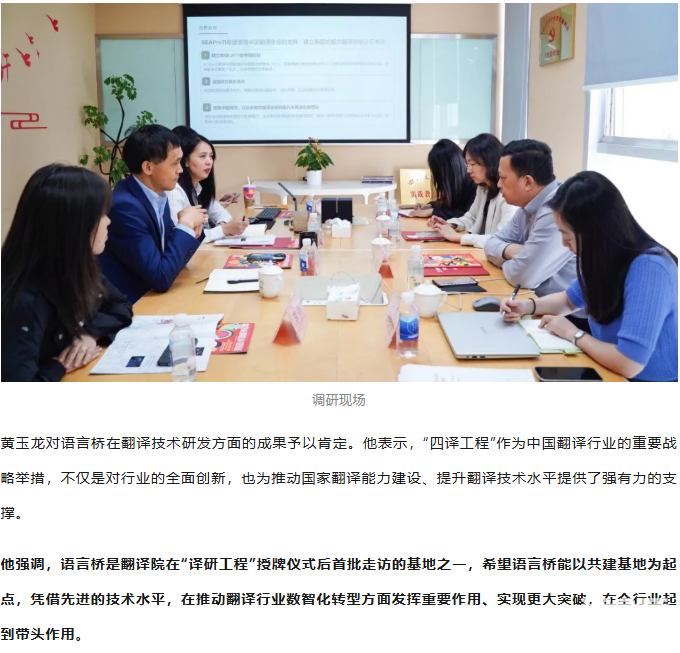黃玉龍赴語言橋調(diào)研中國(guó)翻譯協(xié)會(huì)“四譯工程”落實(shí)情況
