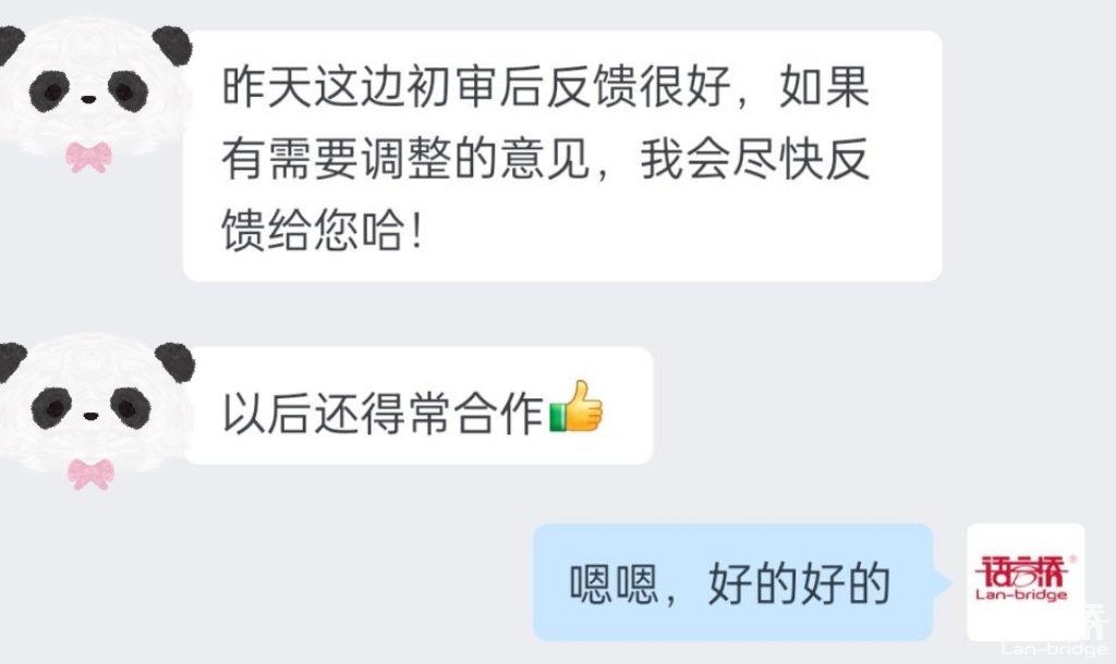 “為客戶創(chuàng)造價(jià)值”,這不是一句空洞的口號(hào),而是語(yǔ)言橋始終踐行的使命。“客戶第一、質(zhì)量?jī)?yōu)先、執(zhí)行到位”是每一個(gè)語(yǔ)言橋人刻在腦海里的工作準(zhǔn)則。