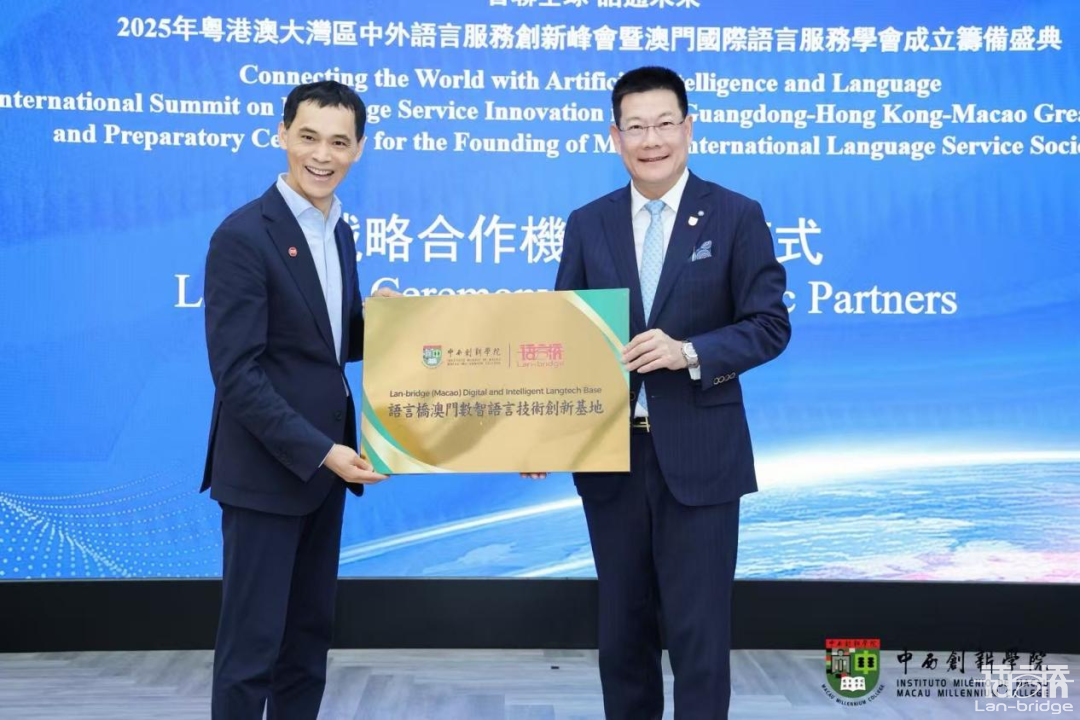 會(huì)議期間,語(yǔ)言橋集團(tuán)與中西創(chuàng)新學(xué)院正式簽署戰(zhàn)略合作協(xié)議,標(biāo)志著雙方在數(shù)智語(yǔ)言服務(wù)領(lǐng)域正式開(kāi)啟了深度合作的新篇章。同時(shí),憑借在語(yǔ)言技術(shù)與創(chuàng)新應(yīng)用方面的領(lǐng)先實(shí)力,并獲授“語(yǔ)言橋澳門(mén)數(shù)智語(yǔ)言技術(shù)創(chuàng)新基地”牌匾,標(biāo)志著雙方在數(shù)智語(yǔ)言服務(wù)領(lǐng)域開(kāi)啟深度合作新篇章。