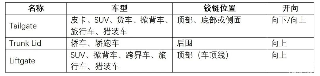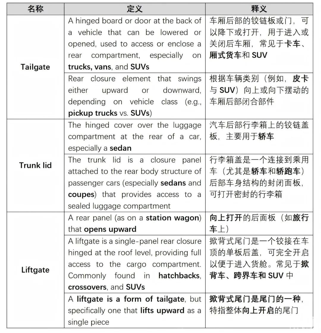 汽車后備箱蓋和尾門常見(jiàn)英文名稱