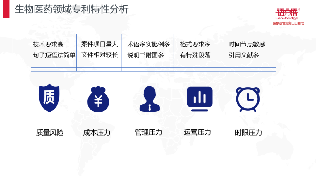 根據(jù)生物醫(yī)藥領(lǐng)域特點(diǎn)帶來的質(zhì)量風(fēng)險(xiǎn),成本壓力,管理壓力,運(yùn)營壓力,時(shí)限壓力,語言橋采用了定制的譯員服務(wù)團(tuán)隊(duì),責(zé)任清晰的,高質(zhì)量,高一致性的專利翻譯服務(wù),使申請人在得到高質(zhì)量的專利翻譯服務(wù)達(dá)到降本增效的同時(shí),也實(shí)現(xiàn)國際專利的精細(xì)化管理。